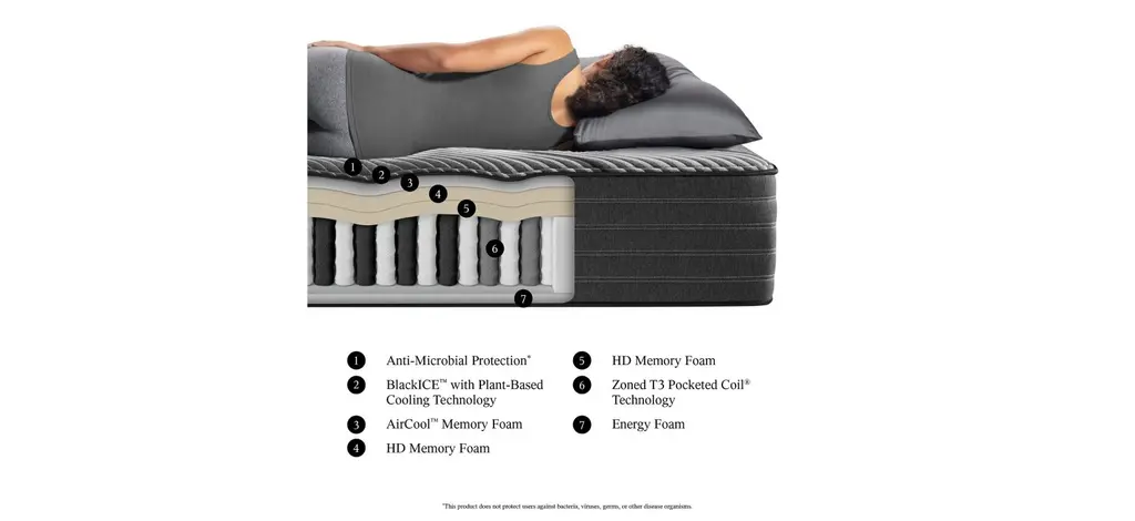 Elevate your sleep! The Beautyrest Black® LX-Class Medium Hybrid Mattress offers more support where your body needs it the most. Plant-based cooling technology provides more cooling power to keep you comfortable as you fall asleep and all night long. Multiple comfort layers, including AirCool™ Memory Foam, HD Memory Foam, and Self-Response™ Latex offer pressure relief, comfort, and support. Beautyrest's premier support system, featuring T3 Pocketed Coil® Technology, provides enhanced support and absorbs energy to reduce motion. Center zone construction helps provide targeted support. These innovative features, paired with a modern design and luxurious comfort, create a first-class sleep.