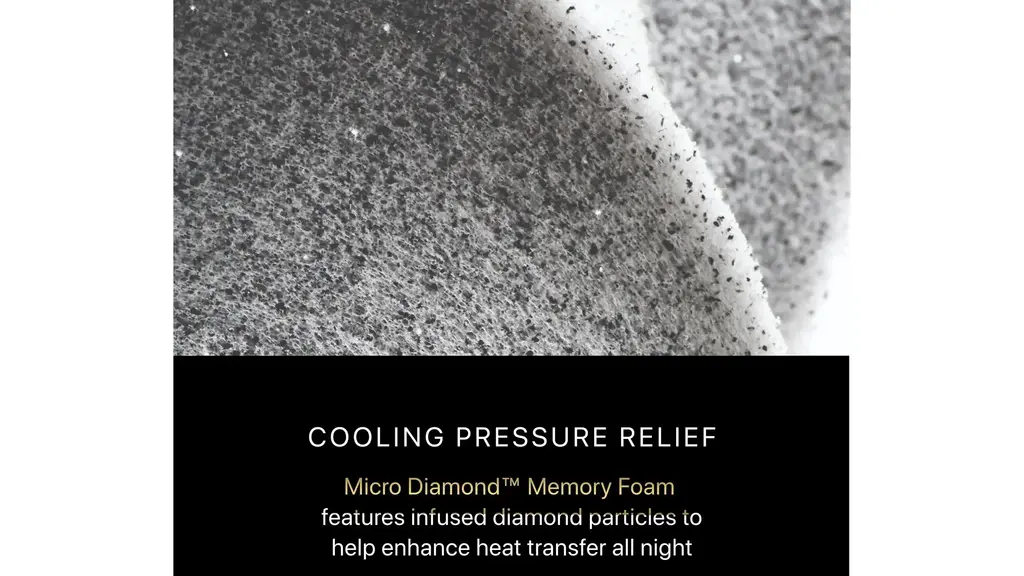 Experience the best of Beautyrest, featuring advanced temperature management technology, premium foams, and advanced, Triple-Stranded Pocketed Coil Technology for conforming support and motion separation. Micro Diamond Memory Foam offers a specialized upgrade for cooling comfort, as the foam, infused with heat-conducting diamond particles, is designed to help move heat away from the body for a cool sleep.