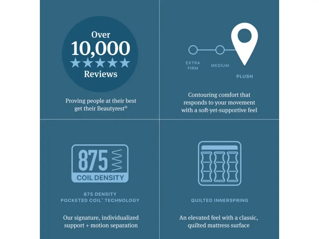 There’s sleep, and then there’s Beautyrest®. With the new Beautyrest® mattress collection, 875-density Pocketed Coil® Technology provides our signature individualized support + motion separation, while Beautyrest® ActiveResponse™ Memory Foam provides contouring comfort to help alleviate aches and pains. With 100 years of innovation behind us and many, many more ahead, our latest collection shows exactly how people at their best, get their Beautyrest®.