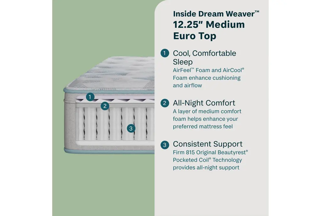 Beautysleep Dream Weaver 12.25" Medium Euro Top Twin Mattress