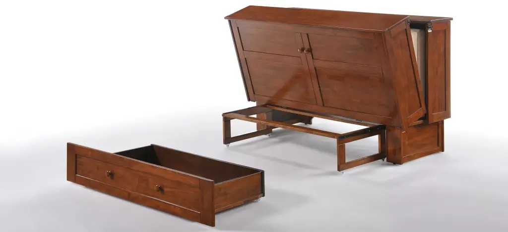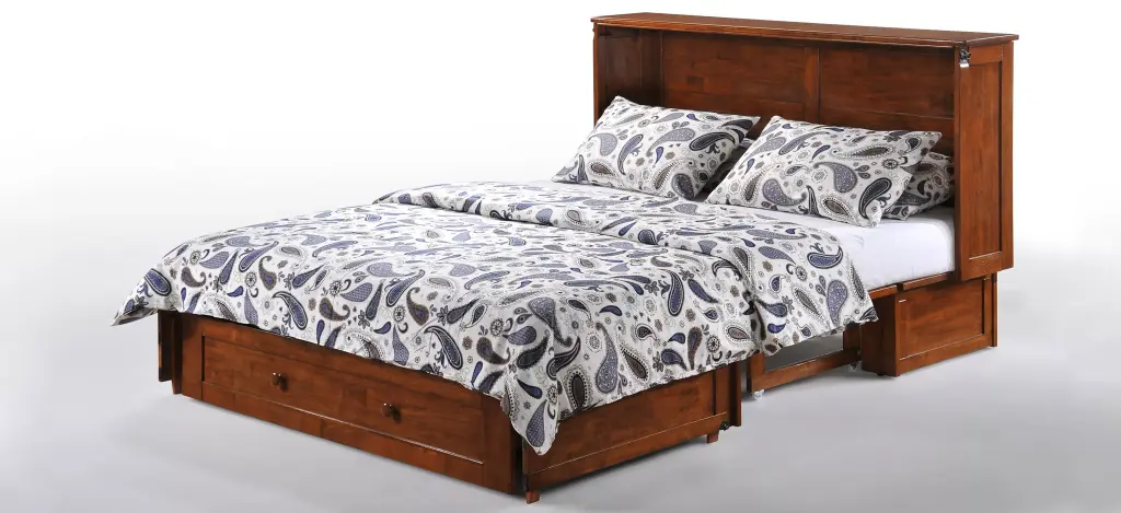 Our Clover cabinet bed with mattress is truly an instant guest bed. Convert it from a handsome cabinet to a comfy bed in less than a minute. When all closed up it takes just 10 square feet of floor space. Easy to use, easy to love.