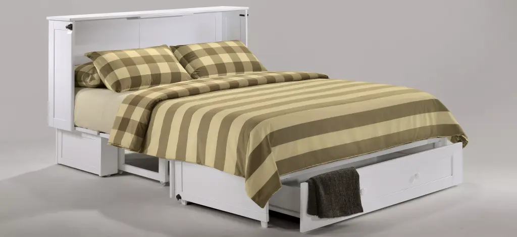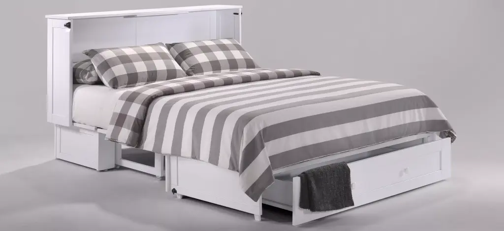 Our Clover cabinet bed with mattress is truly an instant guest bed. Convert it from a handsome cabinet to a comfy bed in less than a minute. When all closed up it takes just 10 square feet of floor space. Easy to use, easy to love.