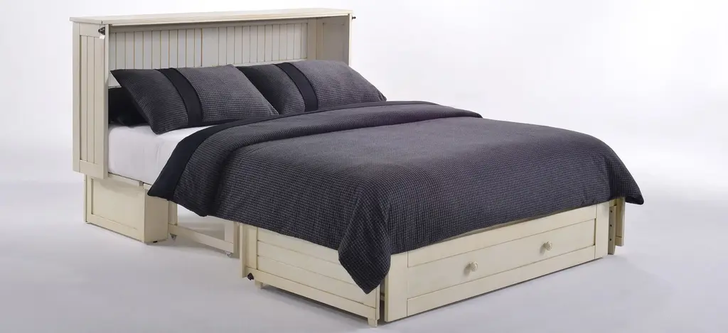 Our Daisy cabinet bed with mattress is truly an instant guest bed. Convert it from a handsome cabinet to a comfy bed in less than a minute. When all closed up it takes just 10 square feet of floor space. Easy to use, easy to love.