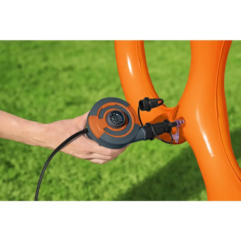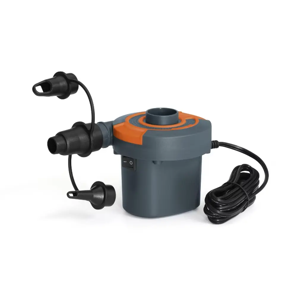 The Bestway® 12V Sidewinder™ AC/DC Air Pump is great for inflating airbeds, rafts, tubes and more quickly and easily. This versatile pump can either be plugged into a home power outlet or into a car outlet, making it great for on-the-go use. Great for indoors or outdoors. It includes three valve adaptors, allowing it to be compatible with almost all inflatable products.