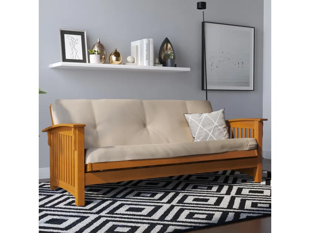 Product Details:This listing is for the mattress only. The frame is not available.Please refer to second image for colorAdd a splash of vibrant color and cushy comfort to your indoor furnishings with this 6-inch full-size futon. This futon features a two-layer foam core/cotton batting mattress design for maximum support and comfort and is available in a wide variety of colors of premium twill fabric.Features a medium firm foam core/ cotton batting design allowing for lasting comfortDimensions: Futon Mattress: 75 inches wide x 54 inches deep x 6 inches highBrowse Color Name: BlueFabric Type: 100% Polyester