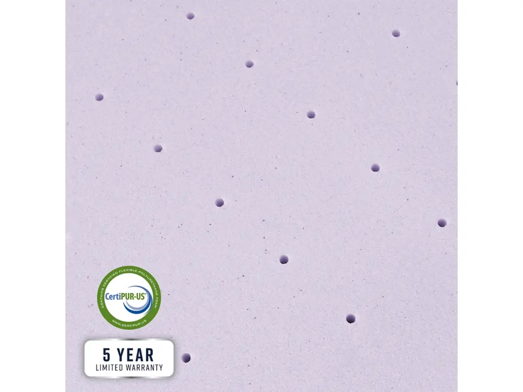 Enjoy refreshing comfort when resting on supportive memory foam found in the Infused Memory Foam Mattress Topper. Three inches of plush AeroFusion memory foam offers supportive spinal alignment to relieve pressure points and is infused with to promote peaceful relaxation for fresh and clean sleep throughout the night. Built-in AeroFusion Ventilation Technology provides maximum air flow and temperature regulation. The odor free memory foam meets CertiPUR-US standards for content, emissions, and durability for long lasting comfort. Each mattress topper is backed by a 5-year limited warranty.