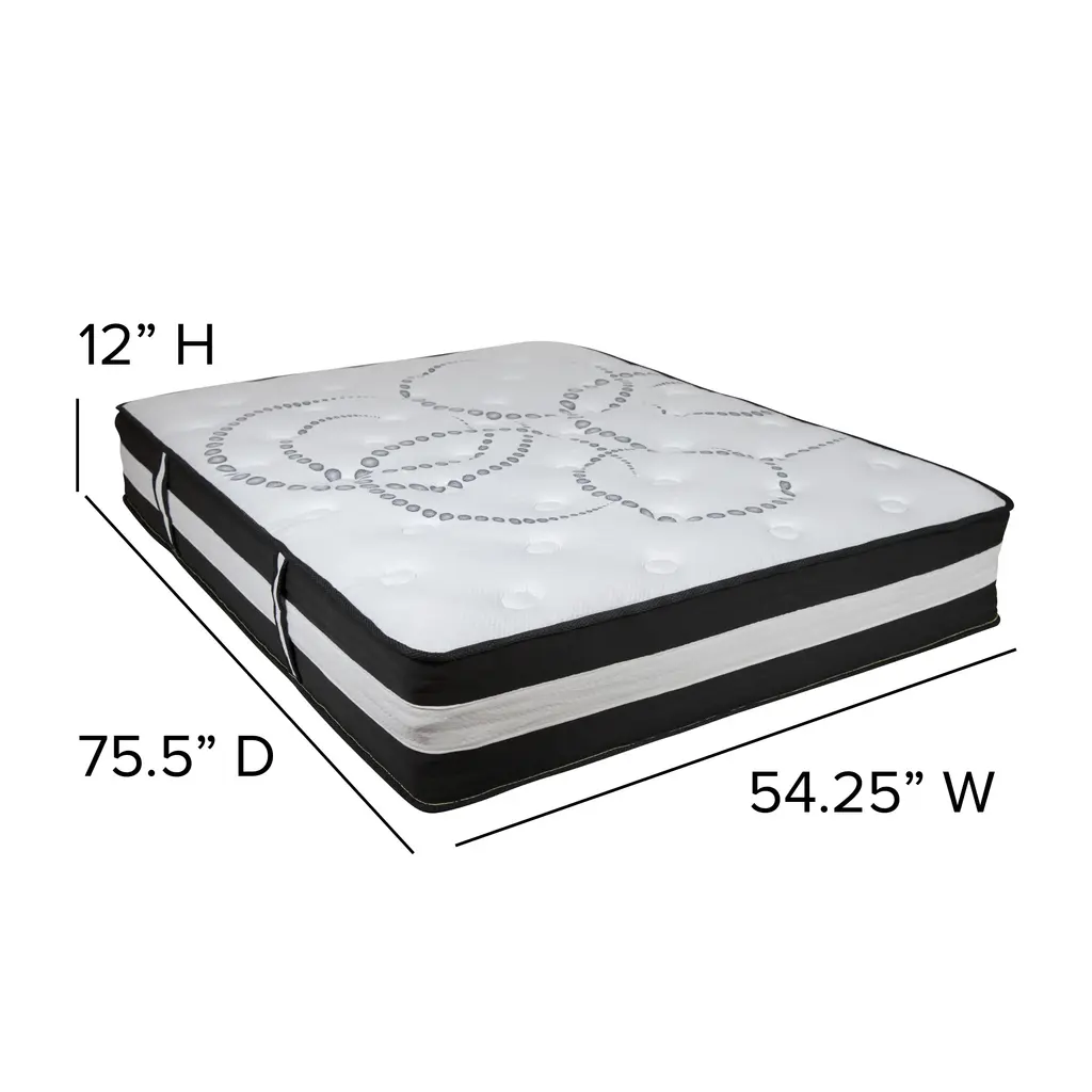 Wake up feeling refreshed and invigorated when you purchase this 12" foam and pocket spring mattress and memory foam topper value bundle. This medium-firm mattress is filled with premium, high-density foam and is constructed with ultra-supportive material. he foam is CertiPUR-US Certified so it's free from heavy metals, phthalates, BPDE, formaldehyde and has reduced VOCs so you can rest easy knowing your indoor air quality won't be compromised. Featuring individually wrapped pocket spring coils, this comfortable mattress will fill gaps of your sleeping form, limit motion transfer and allow airflow through the mattress. This innerspring mattress is fantastic on its own but when you add the 2" thick cooling gel-infused memory foam topper that keeps you sweat free, inhibits allergens and provides whole body support, you have just hit the bedding lottery. Versatility is always a plus and this mattress is compatible with trundle beds, platform beds and adjustable bed frames. When using with a standard bed frame a box spring or other foundation is required. Safety is paramount and this premium mattress has a 16CFR 1632 fire rating while the cooling mattress topper is certified with both 16 CFR 1303 and 16 CFR 1632 fire ratings. Both pieces arrive compressed for easy movement. Simply remove the packaging, lay flat and allow to expand. Great for your first house or apartment, this mattress and topper set gives you supreme comfort and is an exceptional find for a great price!