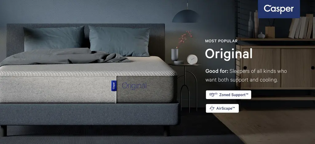 The perfect combination of support and cooling, the Original Casper memory foam mattress uses Zoned Support™, AirScape™ technology and contouring comfort foam for your best night's sleep.