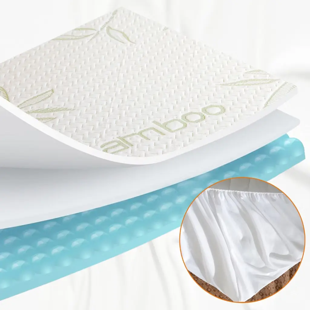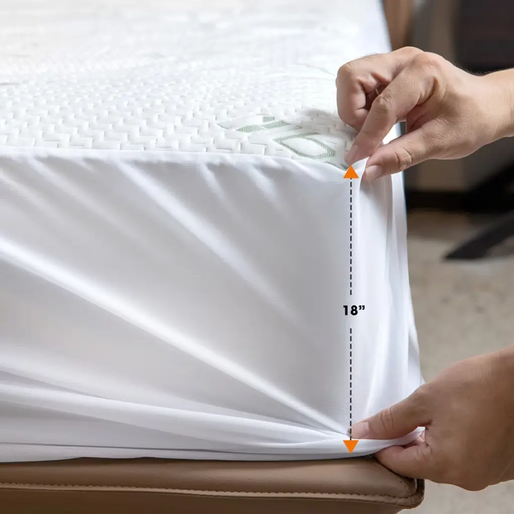 Protect your mattress without sacrificing your comfort with the Cheer Collection Rayon from Bamboo Waterproof Mattress Protector. This high-quality mattress protector is designed to provide total protection against spills, accidents, and incontinence, ensuring your mattress stays fresh and clean. Crafted from super-soft rayon from bamboo material, this protector not only safeguards your mattress but also retains its original comfort. You can enjoy a peaceful and noiseless sleep night after night, thanks to the breathable, quiet fabric that keeps you cool and comfortable. The Cheer Collection Mattress Protector is highly absorbent and 100% waterproof, preventing liquids from leaking through and pooling together. Whether it's spills, urine, perspiration, or pet accidents, this protector has you covered. It's ideal for potty training, incontinence, and for those with hospital beds or bed-wetters in the household. With an elastic stretch fabric skirt, this protector easily fits mattresses up to 18 inches deep, providing a snug and secure fit. Plus, it's incredibly easy to care for – simply toss it in the washing machine with normal household detergents (without bleach) and tumble dry on low heat. No ironing required. Extend the life of your mattress with the Cheer Collection Rayon from Bamboo Waterproof Mattress Protector. Say goodbye to worries about spills and stains and enjoy a rejuvenating night's sleep every night. Add it to your cart now and experience the difference!