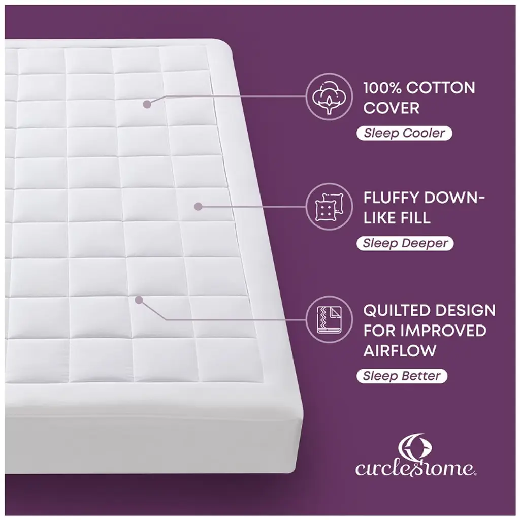 Elevate your sleep experience with the Circles Home Down Alternative Mattress Pad, designed to breathe new life into your mattress. Crafted with a breathable cotton cover of superior quality, it ensures a cool and clean sleeping environment. The premium down alternative padding offers luxurious support to your back and sides, promoting optimal comfort throughout the night. With its commitment to quality and comfort, the Circles Home Down Alternative Mattress Pad guarantees a restful and rejuvenating sleep every time, making it a must-have addition to your bedding collection.