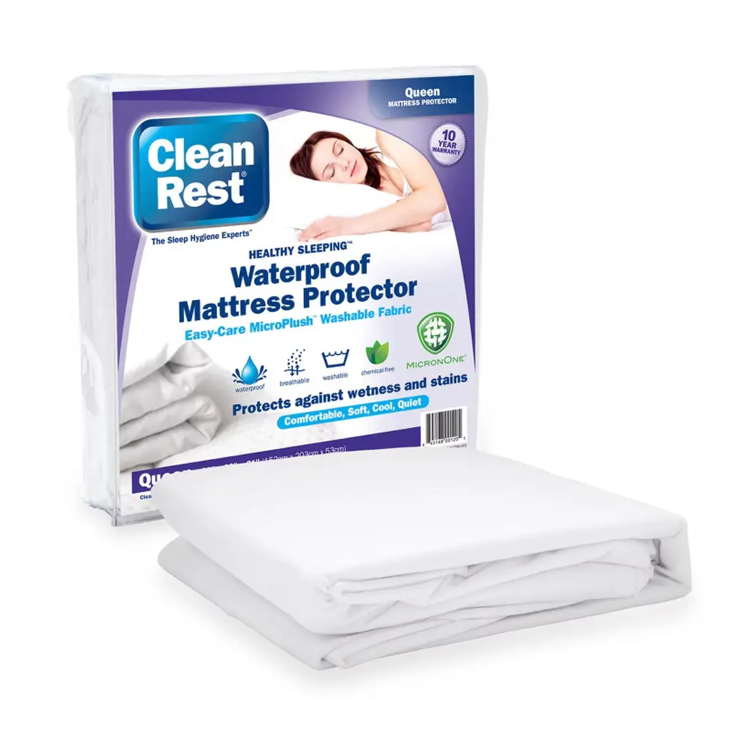 CleanRest Mattress Protectors are trusted by the World's Finest Hotels and are now available in your home! Our Patented MicronOne Fabric is hypoallergenic and protects your bed from allergens, dust mites, mold spores and bacteria. 50% more waterproof than leading competitors based on independent lab testing, our Mattress Protector offers an extra layer of protection against spills, incontinence and pet issues. For ease of care, our Mattress Protector is Machine Washable, and we recommend allergy sufferers wash on the highest heat setting. Crafted with precision and tested rigorously, we stand by our products and offer a 10-Year Manufacturer’s Warranty.