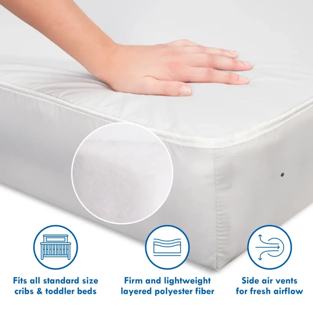 The Davinci complete slumber waterproof crib & toddler mattress is designed with layers of high-density fiber for a firm sleeping surface that is Greenguard Gold certified, so your baby can sleep safely and comfortably. This mattress features a waterproof, tear-resistant cover that will stay new through years of use.