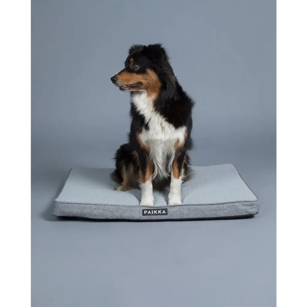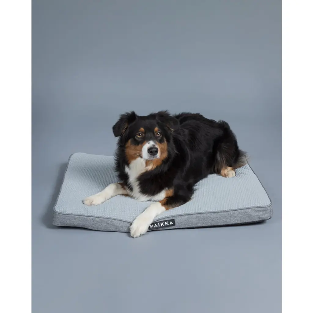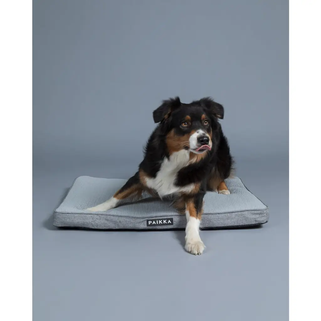 The Cooling Orthopedic Mattress by the Finnish brand PAIKKA offers your dog a soothingly cool and body-contouring place to rest. Its top layer is made from viscoelastic memory foam that molds to the dog’s body, relieving pressure on joints – an ideal choice for dogs with joint or mobility issues. The dog bed’s upholstery features a thermoregulating and moisture-wicking fabric that activates its cooling effect the moment your dog lies down. Certified non-toxic with the Oeko-Tex label, the cooling orthopedic dog mattress comes with a removable, machine-washable cover for easy cleaning. Measuring 39.37 in (100 cm) in width, this mattress is best suited for one medium-sized dog or two smaller canine companions. Its elegant design and color palette also make it a stylish addition to any interior, while the anti-slip base keeps the bed securely in place.