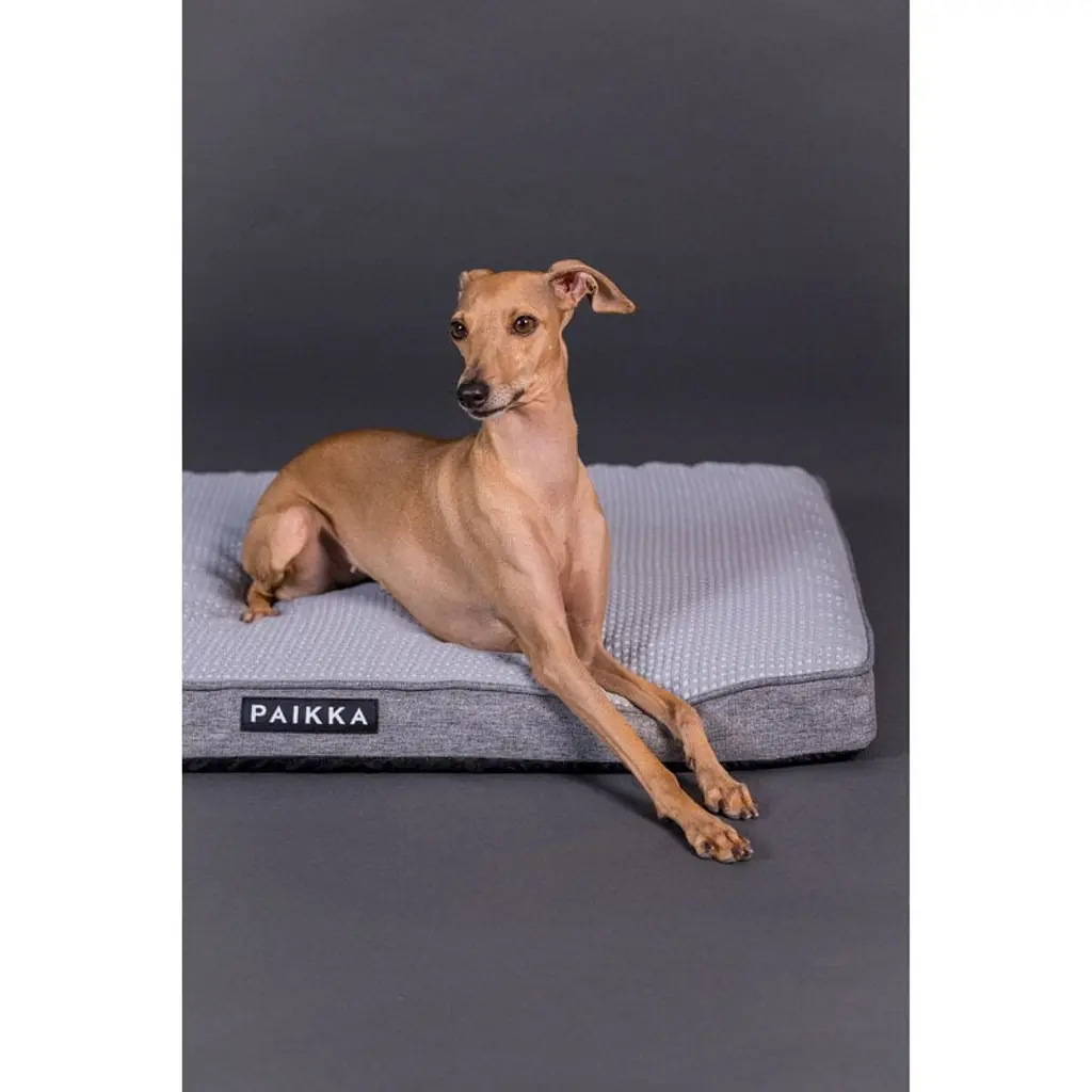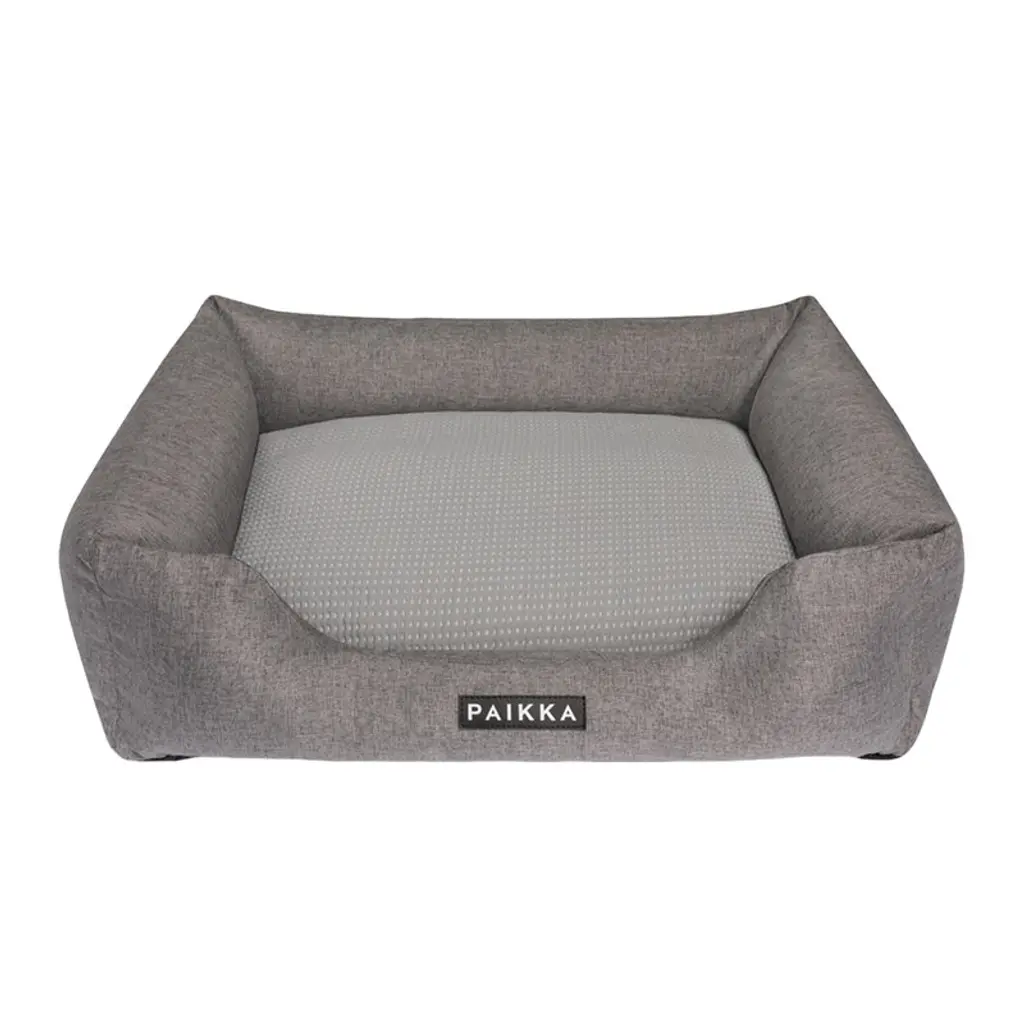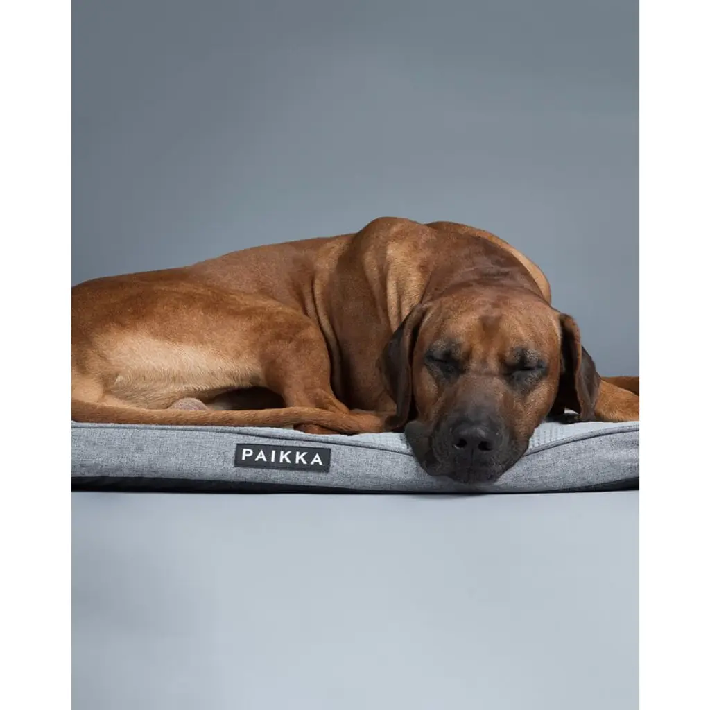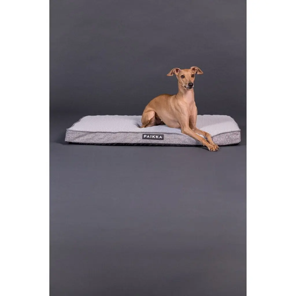 The Cooling Orthopedic Mattress by the Finnish brand PAIKKA offers your dog a soothingly cool and body-contouring place to rest. Its top layer is made from viscoelastic memory foam that molds to the dog’s body, relieving pressure on joints – an ideal choice for dogs with joint or mobility issues. The dog bed’s upholstery features a thermoregulating and moisture-wicking fabric that activates its cooling effect the moment your dog lies down. Certified non-toxic with the Oeko-Tex label, the cooling orthopedic dog mattress comes with a removable, machine-washable cover for easy cleaning. Measuring 39.37 in (100 cm) in width, this mattress is best suited for one medium-sized dog or two smaller canine companions. Its elegant design and color palette also make it a stylish addition to any interior, while the anti-slip base keeps the bed securely in place.