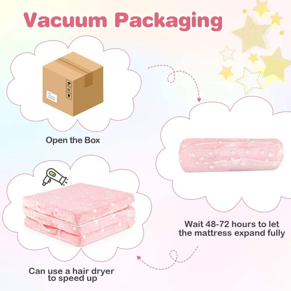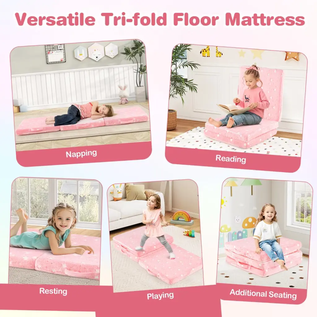 Costway Foldable Floor Mattress For Kids Glow In The Dark Toddler Nap Mat Tri-folding Pink