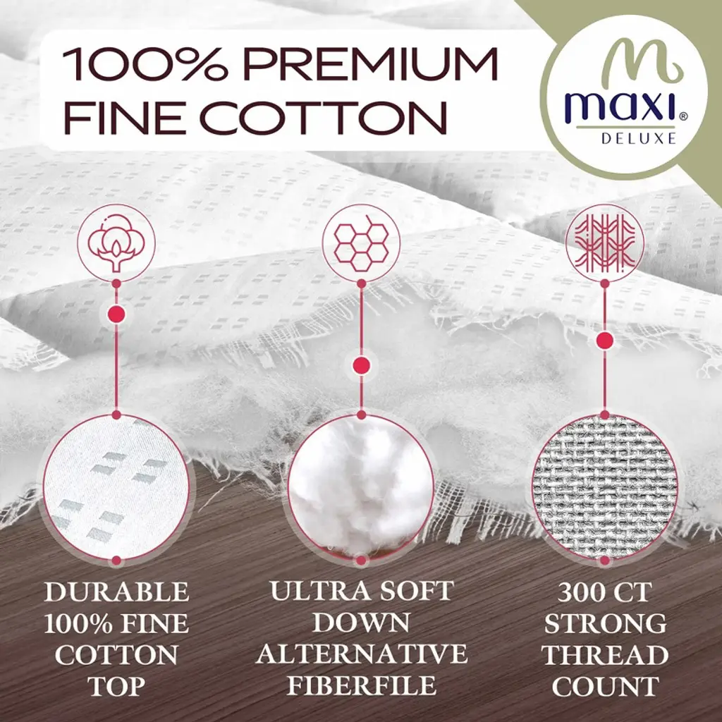 Cotton Sateen Luxury Mattress Pad - Soft & Comfortable Alternative Down Filling - 300 Thread Count