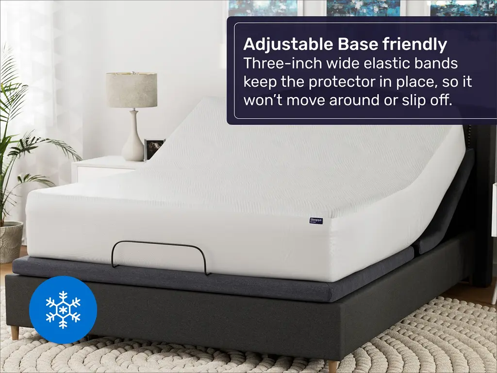 This Sleepy's Deluxe Comfort Cool Mattress Protector checks all the boxes: it’s cooling, fully waterproof, anti-microbial, and provides the added comfort of a mattress pad—all while shielding your mattress from stains, allergens, dust mites & more. Plus, five-sided protection and an antimicrobial Silvadur treatment fights bacteria so you can rest easy. The cushioned protector feels like a cooling mattress pad with all the benefits of a waterproof protector—at a great value.