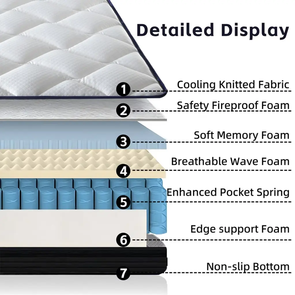 Medium Hybrid Mattress Pocket Spring with CertiPUR-US Certified Foam 10 inch Hybrid Mattress in a Box,Individual Pocket coil, Medium Firm, Memory Foam Mattress