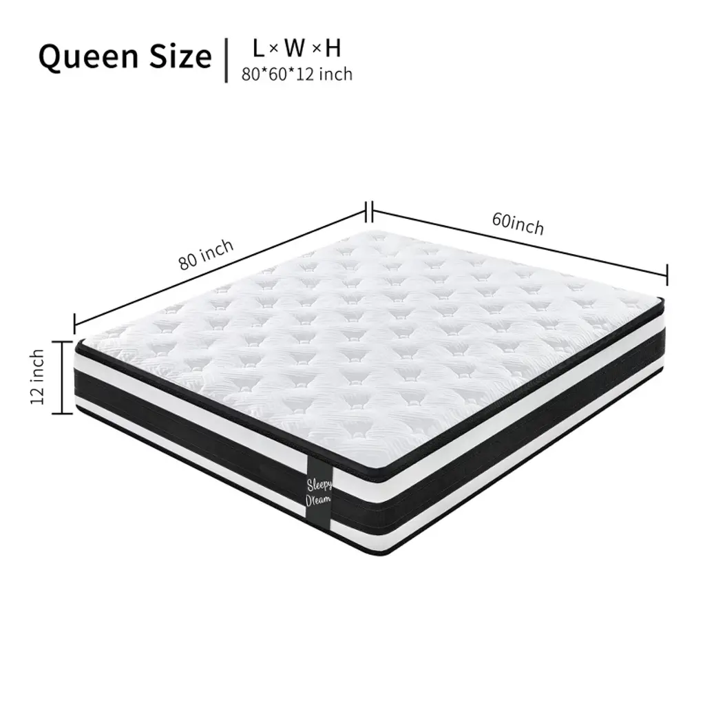 12 Inch QUEEN Size Hybrid Mattress Individual Pocket Spring Oeko-Tex 100 Breathable Memory Foam Knitted Cover CertiPUR-US