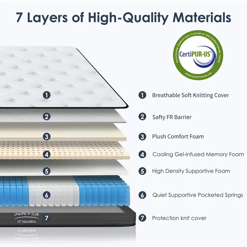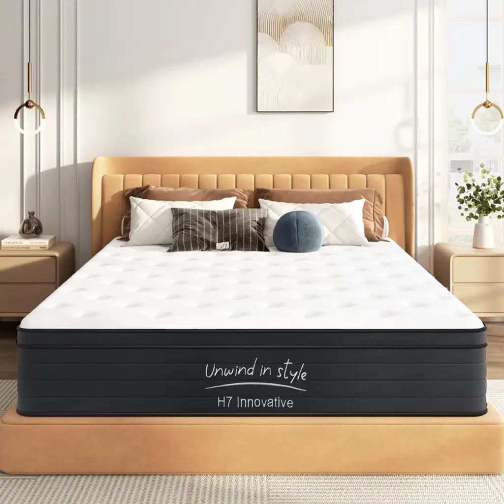 The mattress features a 3D knitted fabric top cover paired with cooling memory foam. This combination ensures breathability and moisture-wic properties, offering a fresh, comfortable sleeping experience. Individually wrapped springs in the mattress can not only promote heat dissipation, but also minimize any disturbance caused by the movement of your sleeping partner or pets, helping you enjoy a peaceful night.