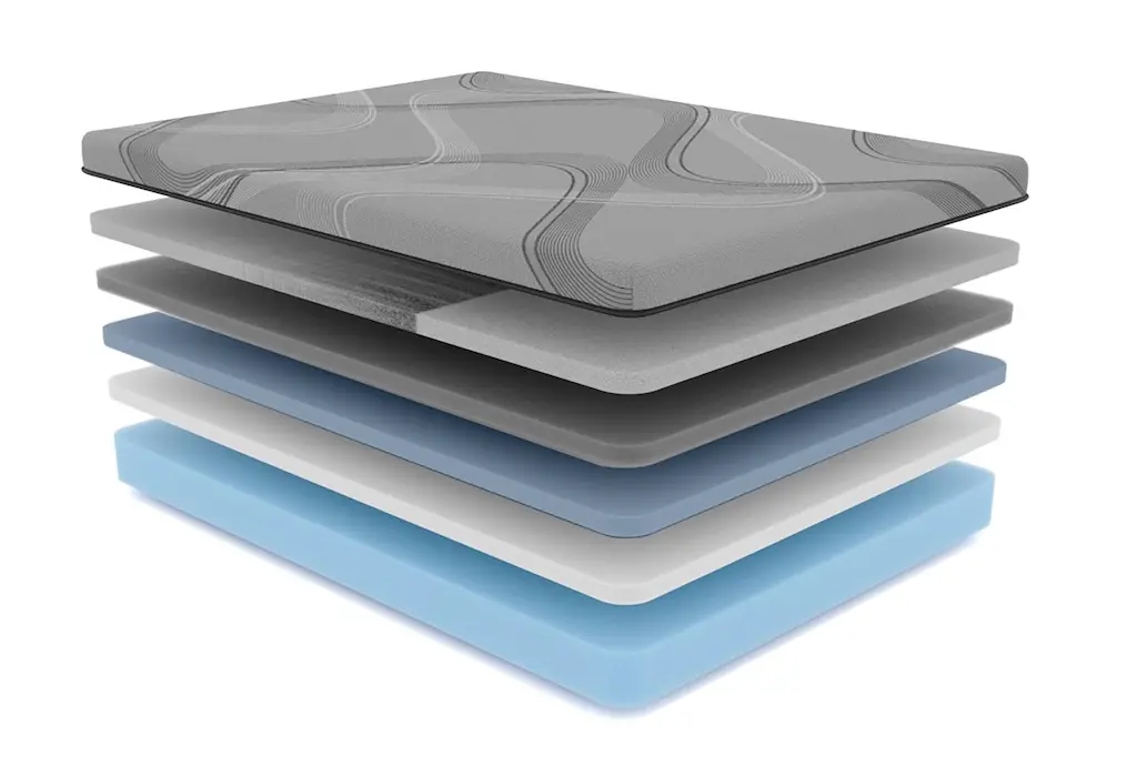 The Diamond Onyx Ice Medium Full Mattress, made in the USA, offers a medium comfort level with its memory foam material. This grey fabric mattress comes with a cooling cover for added comfort.