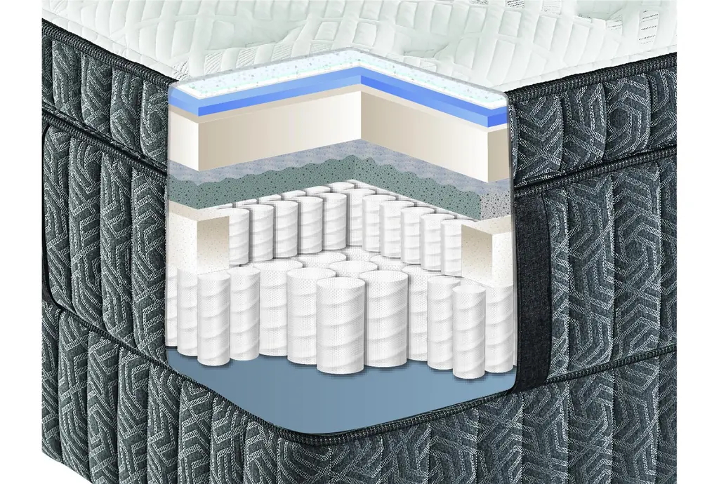Experience luxurious rest and support with the Drew & Jonathan Presence Luxury Firm Euro Top Twin Extra Long Mattress. This hybrid mattress combines the best of both worlds, providing the firmness you need and the comfort you crave. The black and white design adds a chic touch to your bedroom decor.