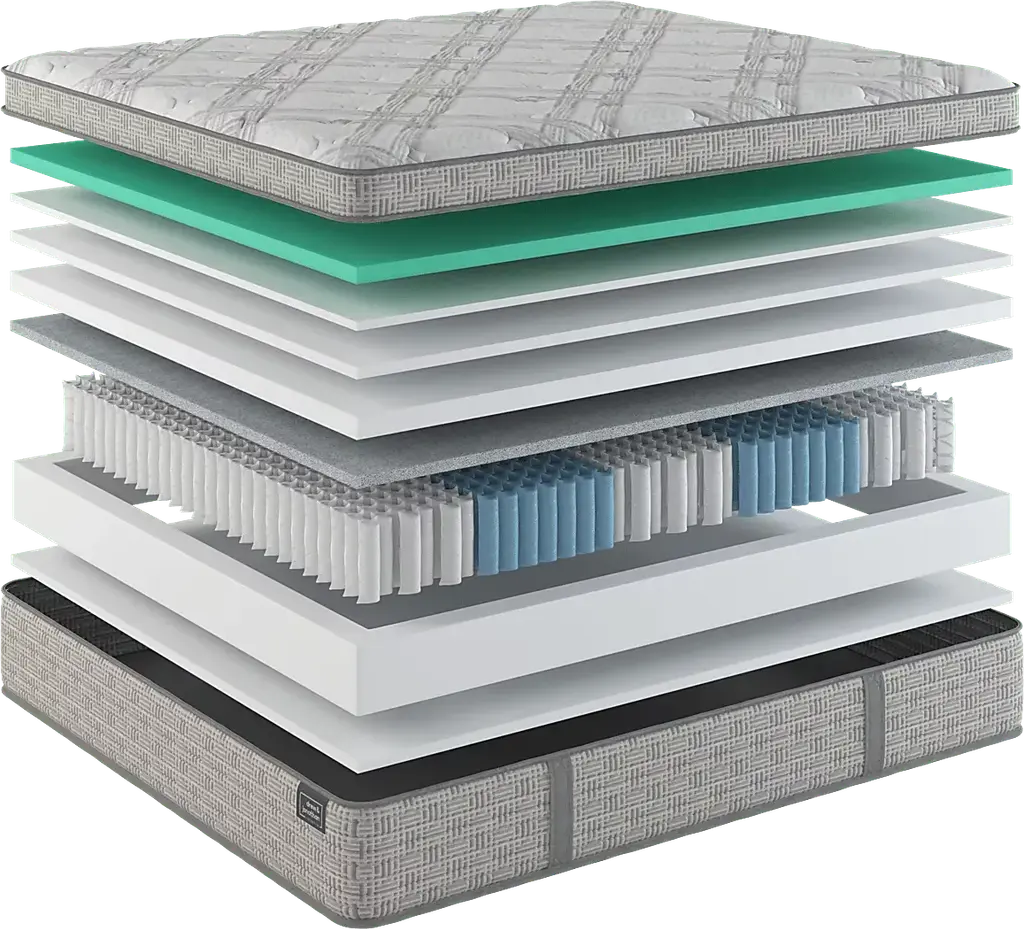 Medium Euro top. Quilted gel foam pulls heat away for a cool-to-the-touch surface. Super soft foam offers extra layers of plushness for a comfortable night's rest. Advanced TheraLume Memory Foam delivers 2.6x longer-lasting cooling and pressure relief than regular foams. Five-zoned coil system contours to your body for additional back and thigh support, reducing tossing and turning. Foam encasement surrounds the mattress for an extended, comfortable sleep area.