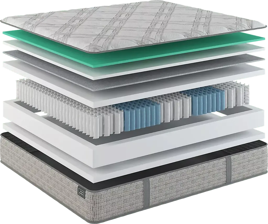 Extra firm top. Quilted gel foam pulls heat away for a cool-to-the-touch surface. Firm support foam offers an extra layer of enhanced pressure relief. Advanced TheraLume Memory Foam delivers 2.6x longer-lasting cooling and pressure relief than regular foams. Five-zoned coil system contours to your body for additional back and thigh support, reducing tossing and turning. Foam encasement surrounds the mattress for an extended, comfortable sleep area. Conveniently raise or lower the head of your mattress using the RTG Sleep 2900 adjustable base with wireless remote control.