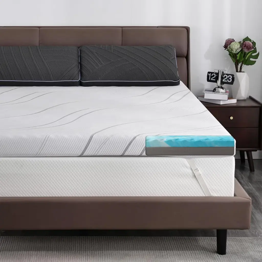 Experience the comfort and support of our upgraded firm mattress topper,featuring a dual-layer design with cooling egg crate gel foam and bamboo support foam for medium and firm sleep options.The luxurious ice silk cover is fiberglass-free,breathable,and machine washable,keeping you cool and safe throughout the night.With an anti-slip bottom and elastic straps,the topper stays securely in place,while its CertiPUR-certified foam ensures quality and durability.Easy to set up from a box,this versatile topper is perfect for upgrading your mattress at home,in a dorm,camper,or guest room¡ªmaking it a thoughtful gift for your loved ones.