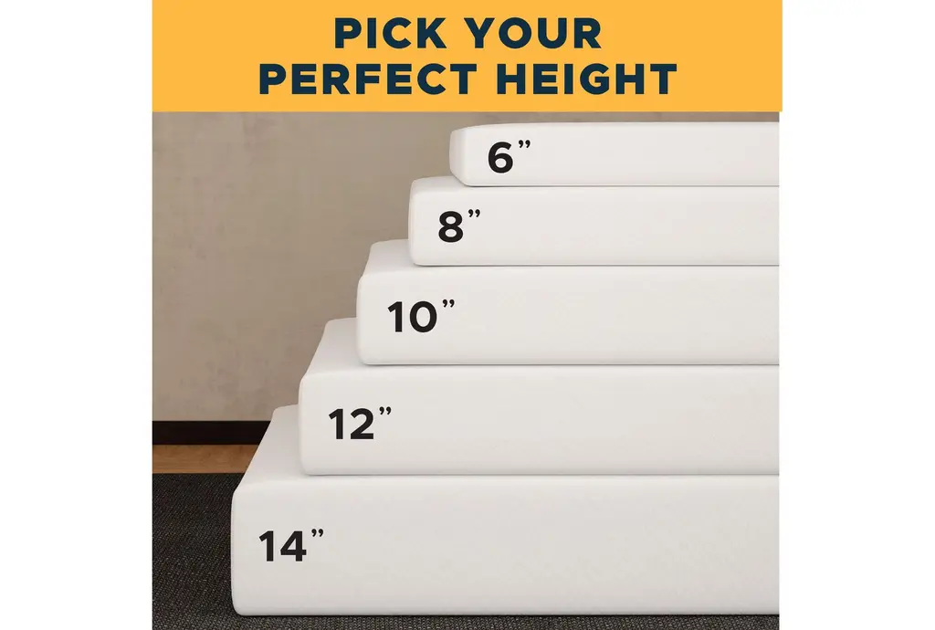 Earlybird Dual Cool 10" Medium Memory Foam Full Mattress delivers balanced support and cooling comfort for a restful night's sleep. A breathable cooling cover works with responsive memory foam and a polyurethane support layer to manage heat while providing pressure relief and moderate contouring. At a 10-inch profile it ships compressed as a bed in a box, is made in the USA, and includes a 10 year warranty for long-term peace of mind. Pairs with standard foundations and box springs to provide stable support, making it a good fit for combination sleepers who want both cushioning and responsiveness.
