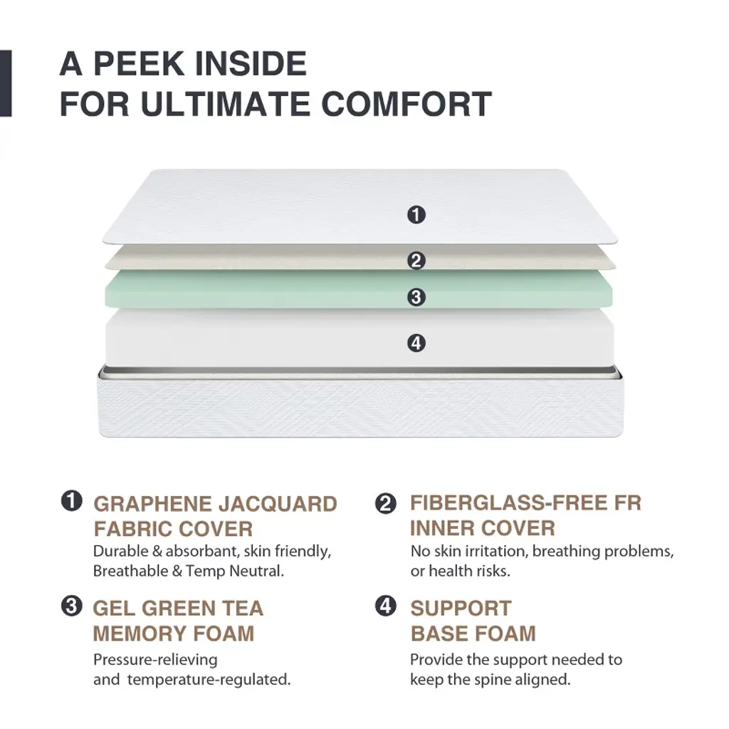 Ego White 8" Full Size Medium Gel Green Tea Aerofusion Memory Foam Mattress