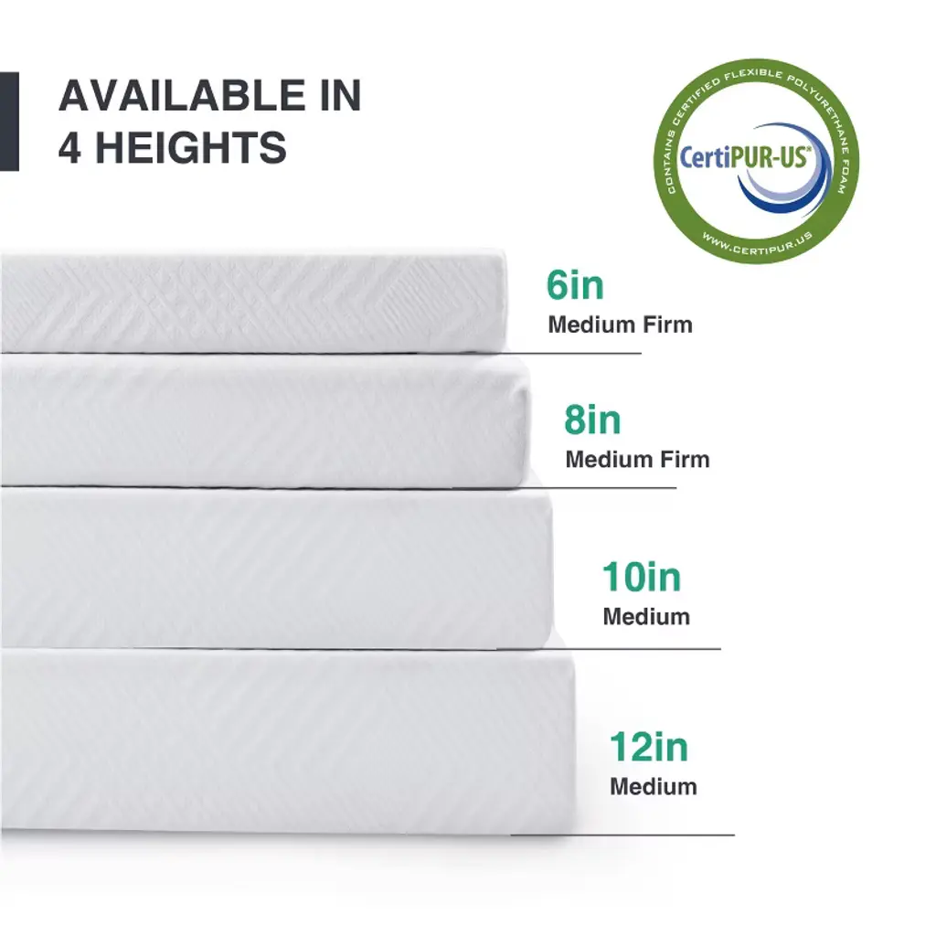 Ego White 8" Queen Size Medium Gel Green Tea Aerofusion Memory Foam Mattress