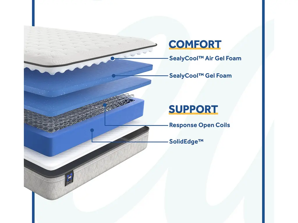 The Essentials Winter Green Medium Euro Top mattress features more Response Open Coils for adaptive support, additional layers of comfort foams, and a reinforced mattress edge for increased durability. Experience an innerspring mattress that offers exceptional full-body support with ease of movement so you can wake up ready to take on the day.