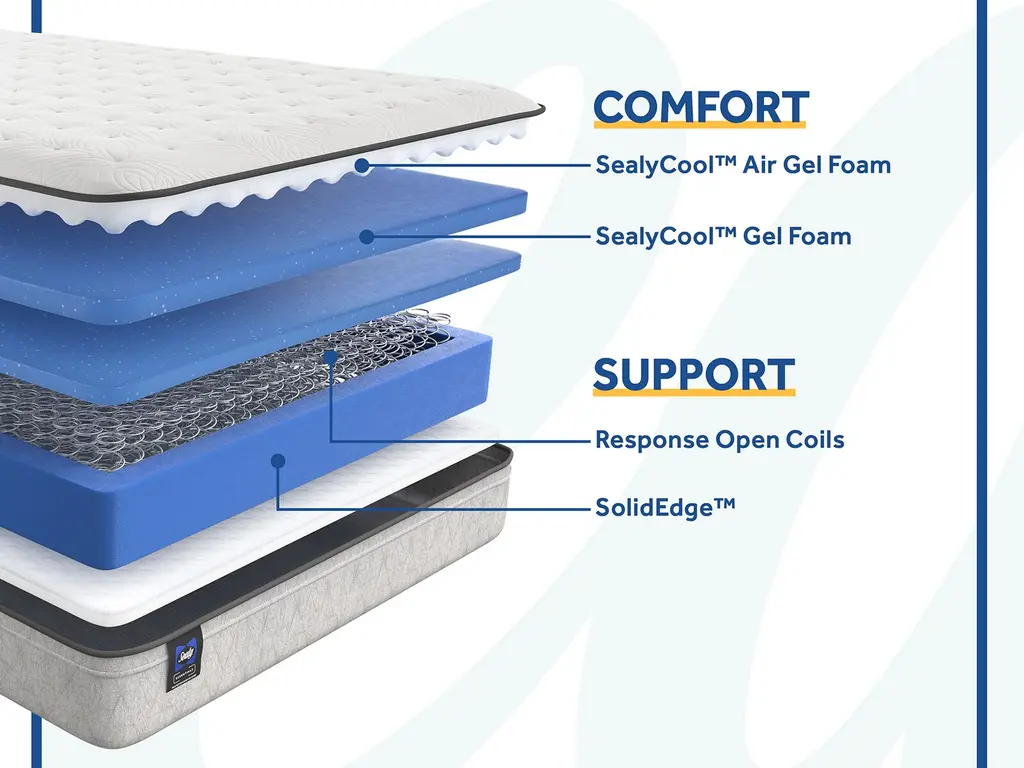 The Essentials Winter Green Plush Euro Top mattress features more Response Open Coils for adaptive support, additional layers of comfort foams, and a reinforced mattress edge for increased durability. Experience an innerspring mattress that offers exceptional full-body support with ease of movement so you can wake up ready to take on the day.