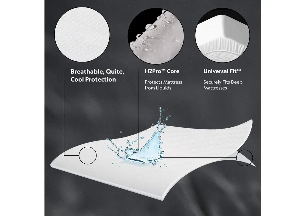 The Five Sided™ Smooth mattress protector helps prevent the development of asthma and features the laboratory-certified H2Pro® liquid-proof membrane on five sides of the mattress. With microscopic pores to allow air passage, the H2Pro® layer completely blocks liquids, viruses, dust mites and allergens. Unlike other bed protectors that sound like a plastic bag and don't cover the whole mattress, the Five Sided™ protector is quiet and includes the universal fit elastic ensuring a secure fit for mattress depths 6”-22”. Weight 25.000 lbs. (11.25kgs.)