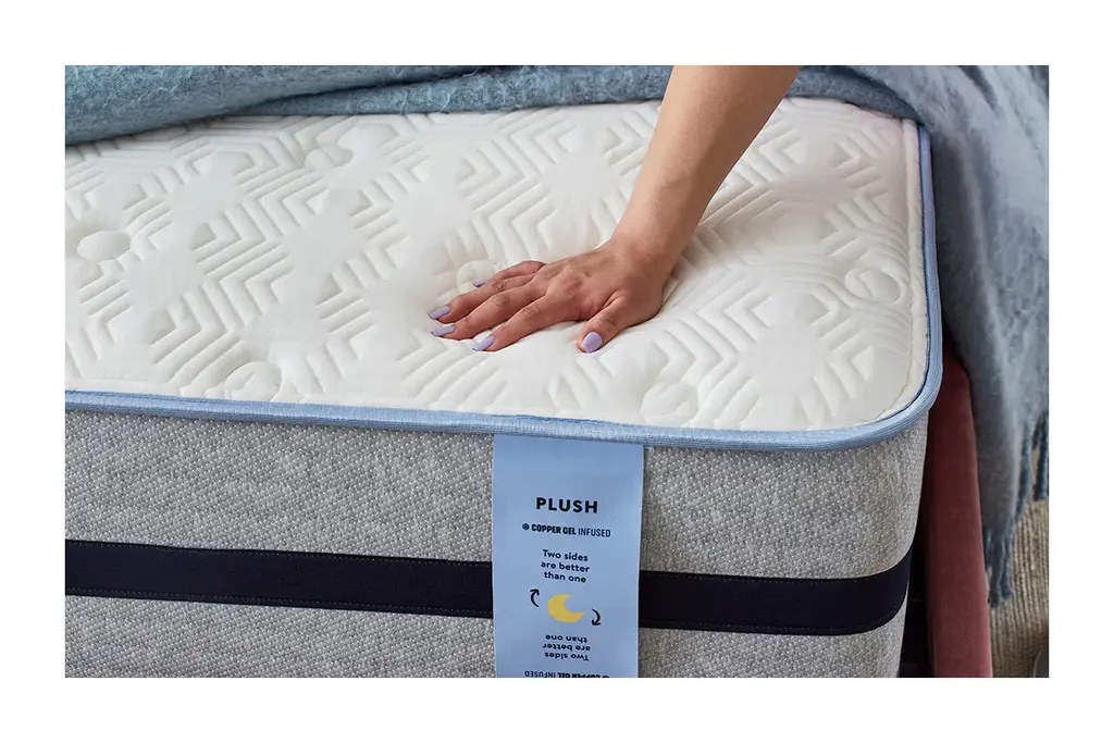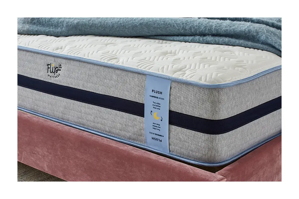The Flipit™ Deluxe Plush Two-Sided Mattress features copper gel technology for an extra cool feel and added comfort so you’ll always wake up feeling refreshed and ready to take the day. Constructed from durable, cushioning materials, this mattress offers balanced support and contours to your unique body shape, providing relief to pressure points and keeping your spine in neutral alignment. The addition of copper gel technology ensures you’ll stay comfortably cool all night and creates an antimicrobial barrier that fights odor-causing bacteria and keeps your mattress fresh. Every Flipit mattress is double-sided, which means you’ll double the lifespan of your mattress and get great sleep for many moons to come.