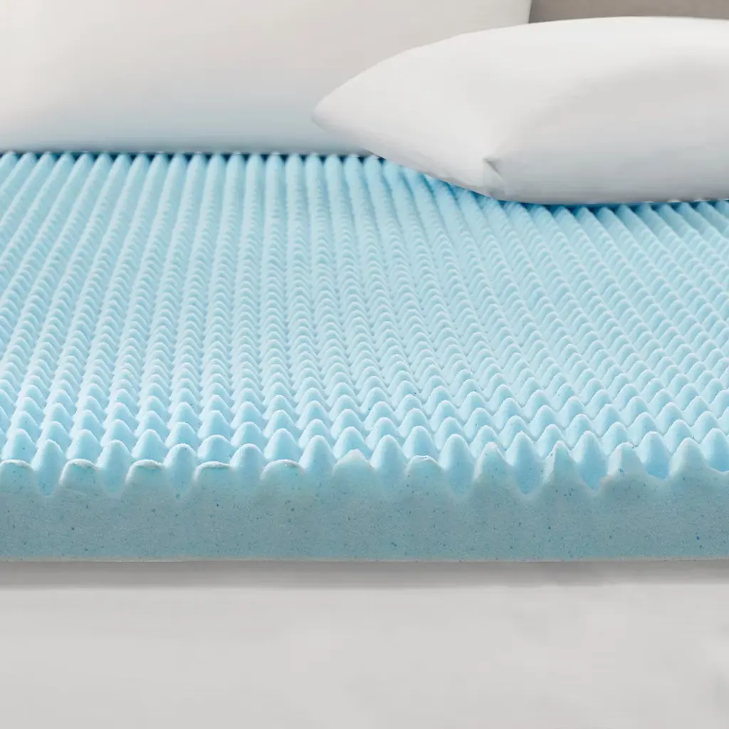Enhance your sleep quality with the Foam Topper. Its unique convoluted design maximizes airflow, while the cooling gel-infused memory foam ensures unparalleled comfort. This topper not only keeps you cool but also relieves pressure points through the 2.5 lb. density temperature control foam, adjusting to your body temperature. Resistant to dust mites and naturally antimicrobial, the reversible topper provides the flexibility of a contoured or flat sleeping surface. The slightly oversized design guarantees complete mattress coverage for end-to-end comfort. Conveniently compressed into one box for effortless shipping, unbox, unroll, and witness the topper expanding to its original shape within 72 hours.