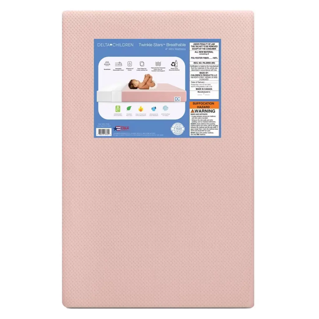 The Graco Deluxe Foam Crib & Toddler Mattress is GREENGUARD Gold Certified, Formaldehyde Free, Fiberglass Free, Free of Chemical Flame Retardants, Certified by UL, JPMA Certified, and includes a CertiPUR-US Certified foam core. Proud recipient of the Top Product Award by Parent Tested Parent Approved (PTPA), the PTPA Seal of Approval, the Women’s Choice Award for “9 out of 10 Customer Recommended Crib & Toddler Mattress” and National Parenting Product Awards (NAPPA) winner.The Graco Deluxe Crib & Toddler Mattress features a removable mattress cover that is comfortably soft, water-resistant, and machine washable. For easier cleaning, this zip-off mattress cover is machine-washable (machine wash in cold water on delicate cycle, hang to dry. The Graco Deluxe Crib & Toddler Mattress has a foam core that is perforated to allow for increased air flow without compromising on firmness.For optimal performance, unbox and allow your mattress to fully expand in a room temperature setting immediately upon delivery. Fits any standard full-size crib or toddler bed. Dimensions: Length (52 inches) x Width (28 inches) x Height (up to 4.5 inches); Weight (7 pounds). Mattress core (100% polyurethane foam). Mattress cover (100% polyester). Backed by a 10-year limited manufacturer’s warranty. Exclusively manufactured by Stork Craft Manufacturing (USA) Inc.
