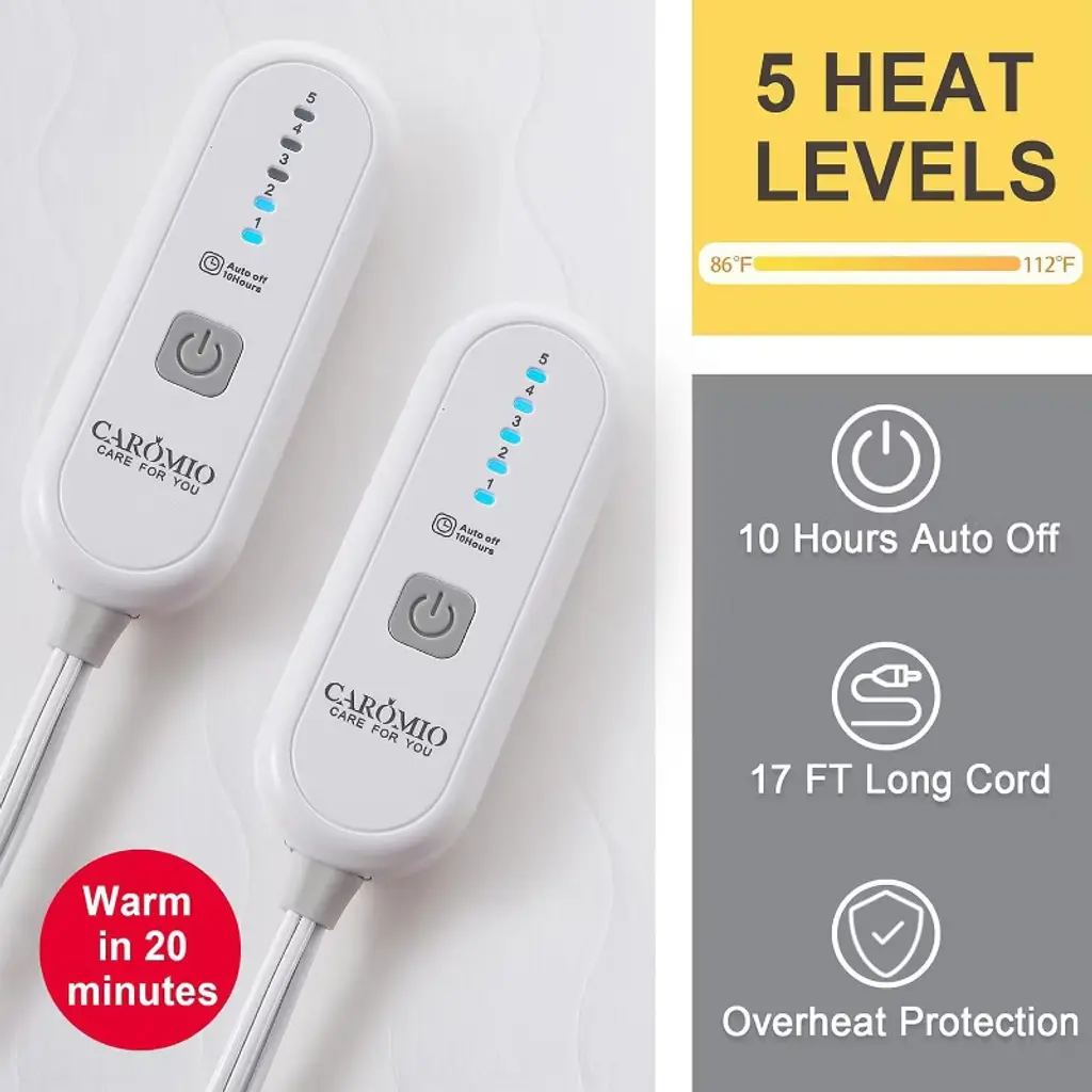 Heated Mattress Pad Queen Size - 5 Fast Heating Levels & 10 Hours Auto Off Quilted Electric Mattress Pad With 18" Deep Pocket & Dual Control