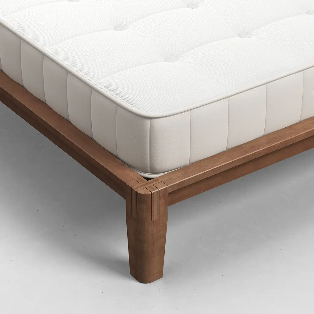 After creating the perfect platform beds, we searched for a quality mattress that offered an ideal combination of support and comfort. Not finding one that met our standards, we created our own. Thoughtfully designed to complement our bed frames, the Hybrid Mattress is breathable, pressure-relieving, and sustainable all in one. Expertly crafted using high-quality and long-lasting layers of organic wool, memory foam, organic latex, and recycled steel coils. Available in Firm, Medium, or Plush for personalized support.