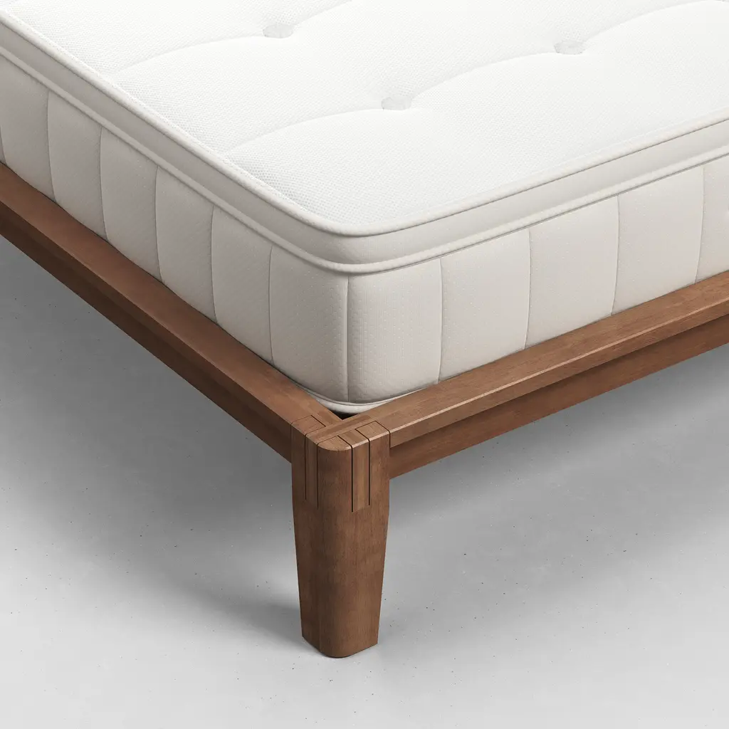 After creating the perfect platform beds, we searched for a quality mattress that offered an ideal combination of support and comfort. Not finding one that met our standards, we created our own. Thoughtfully designed to complement our bed frames, the Hybrid Mattress is breathable, pressure-relieving, and sustainable all in one. Expertly crafted using high-quality and long-lasting layers of organic wool, memory foam, organic latex, and recycled steel coils. Available in Firm, Medium, or Plush for personalized support.