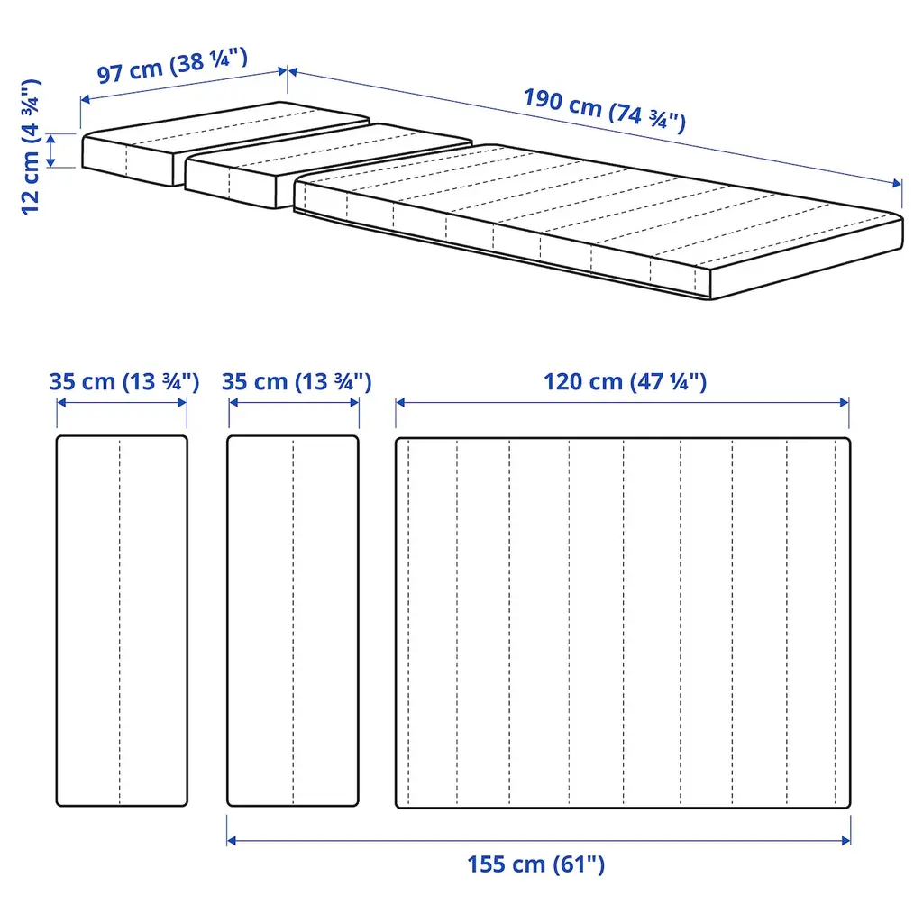 INNERLIG Spring mattress for extendable bed 38 1/4x74 3/4 ". The outer cover is easy to remove and is machine washable at 140°F (Hot). Bonnell springs provide great comfort and allows air circulation. Protective foam box and felt pad for added comfort and durability. Roll-packed - easy to take home.