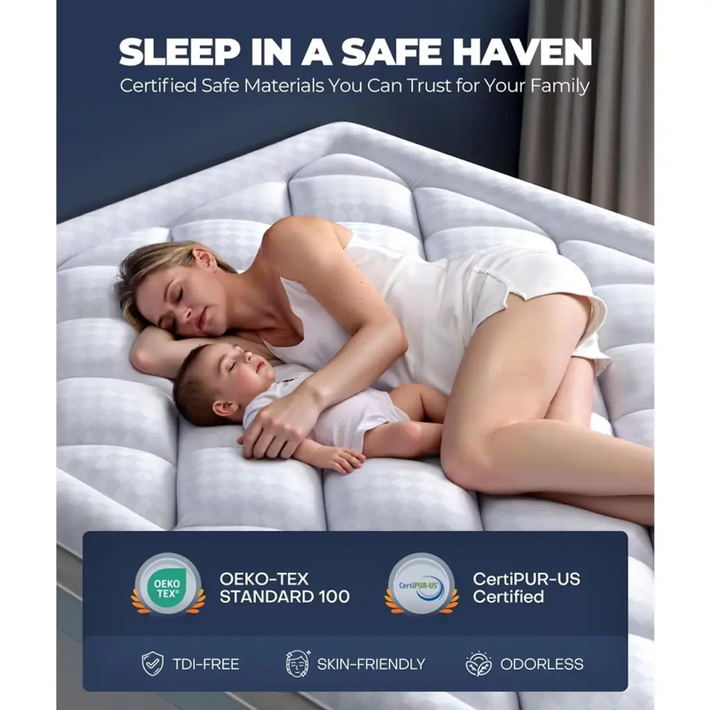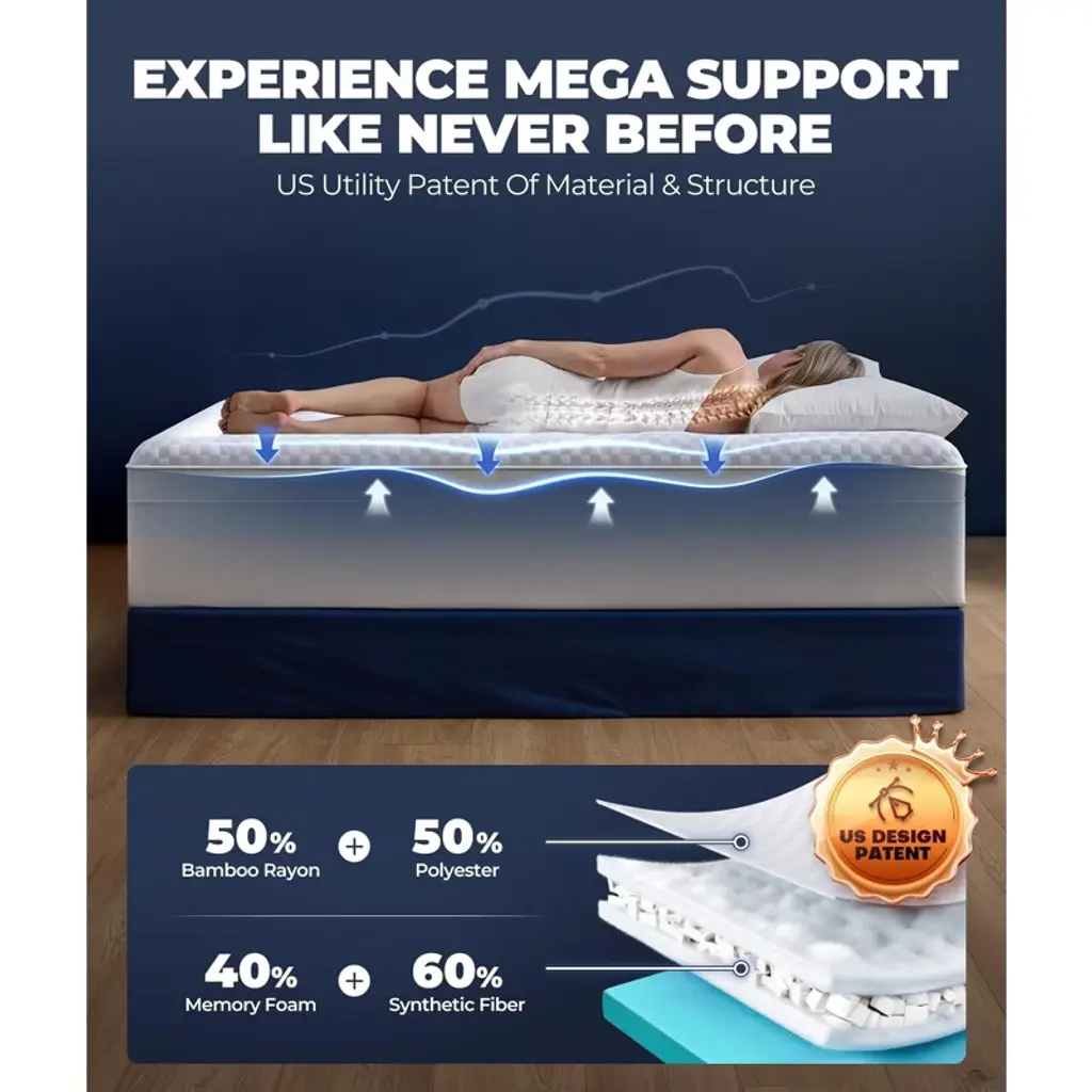 Upgrade your sleep with this 5 - inch memory foam queen mattress topper. It features a dual - layer design with a 2.5 - inch memory foam blend plush topper and a 2.5 - inch cooling gel - infused memory foam pad. The 3 - layer structure, filled with 40% memory foam and 60% polyester, offers a luxurious, cloud - like comfort. The 50% bamboo rayon surface wicks away moisture and balances temperature, ensuring a cool sleep. It's hypoallergenic, making it safe for you and your family. The elastic deep pocket and corner straps keep the topper in place on mattresses of various heights, allowing you to move freely. Use it to transform an imperfect mattress and enjoy a more comfortable sleep every night. Whether you're dealing with a sagging mattress or just want to enhance your sleep quality, this topper is the perfect solution.