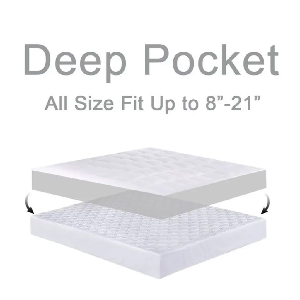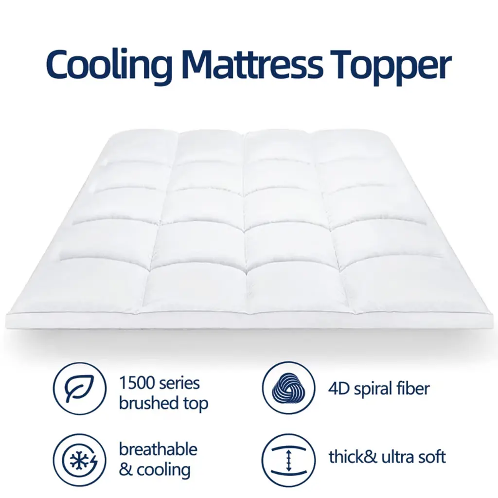 Are you suffering from back pain and tired of your too - firm mattress? Our mattress topper is the perfect solution! It features an innovative "Double Border Pillow Top Construction" technology, overstuffed with 60% more filling than average. The 1500 series fabric is breathable, quick - drying, and shrink - resistant, with a peach skin finish that wicks moisture and keeps you cool. Free from feather odor and heat build - up, it offers a healthier sleep environment. With premium 4D spiral fiber, it relieves your body and mind. It comes in various sizes and has a deep pocket skirt for a perfect fit. It's easy to care for, just machine wash in a gentle cold water cycle. After opening the vacuum - packed package, shake, pat, and tumble dry on low heat for 20 minutes to restore its shape. Enjoy the luxurious comfort at home and say goodbye to uncomfortable nights!