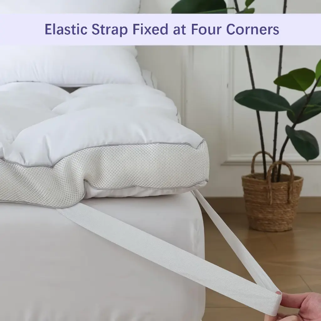 Itopfox Memory Foam Mattress Topper With Cooling & Pressure Relief, Secure Strap Design For Back Pain, Soft & Supportive