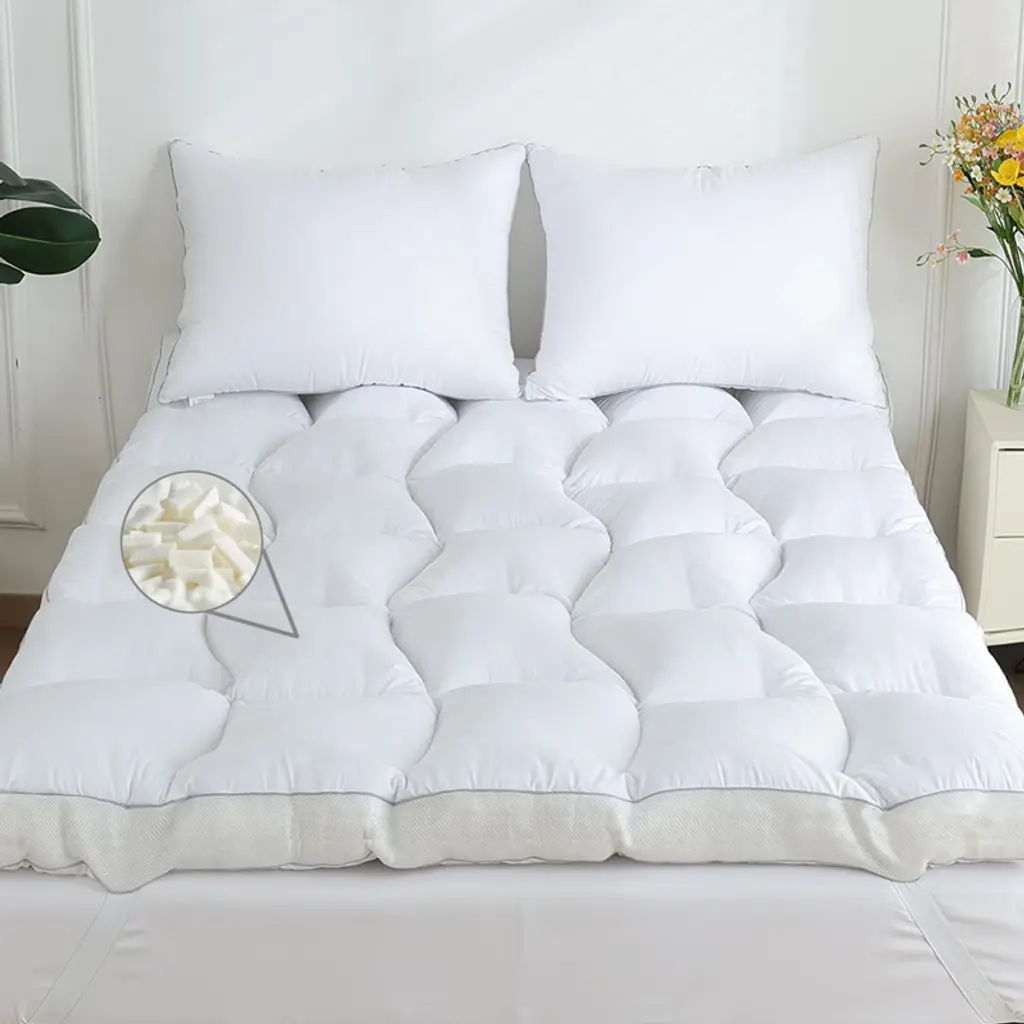 Upgrade your sleep with this memory foam mattress topper. Crafted from high - density memory foam, it offers excellent contouring support and pressure relief, suitable for all seasons. The ventilated design ensures good airflow, keeping you cool, especially in warm climates. It comes with elastic corner straps to prevent shifting during sleep. Whether your mattress is old or too firm, this topper can transform it into a soft and supportive bed, improving your sleep quality and extending the life of your mattress. The unique arc - shaped quilting enhances durability and distributes the fill evenly. Simply place it on your mattress and enjoy a more comfortable sleep.