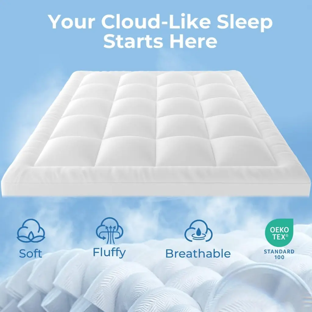 Itopfox Queen Mattress Topper - Extra Thick Cooling & Breathable With Deep Pocket & Soft Down Alternative Filling For Cloud-like Comfort
