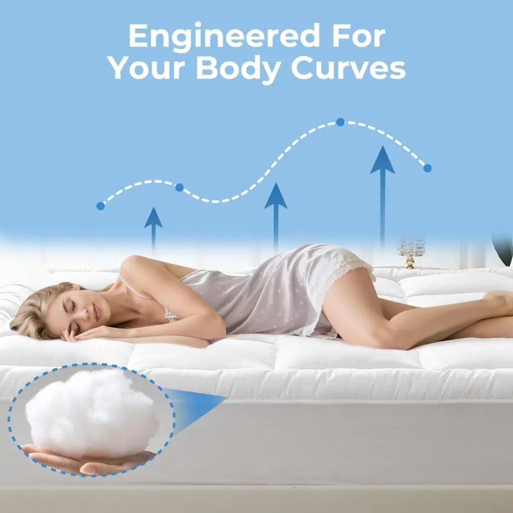 Upgrade your sleep with this extra - thick mattress topper. Filled with 600GMS of 7D spiral fiber, it offers cloud - like comfort, gently conforming to your body to relieve pressure and provide a plush surface. The precision square quilting ensures the filling stays evenly distributed, maintaining its fluffiness and support over time. The breathable, moisture - wicking fabric is a game - changer for hot sleepers, keeping you cool and dry all night. The deep - pocket design fits various mattresses securely, no matter your sleeping position. And the best part? It's machine - washable, so you can easily keep it clean. Whether you have a memory foam, spring, or hybrid bed, this topper will transform your sleep experience, providing a hotel - worthy rest every night.