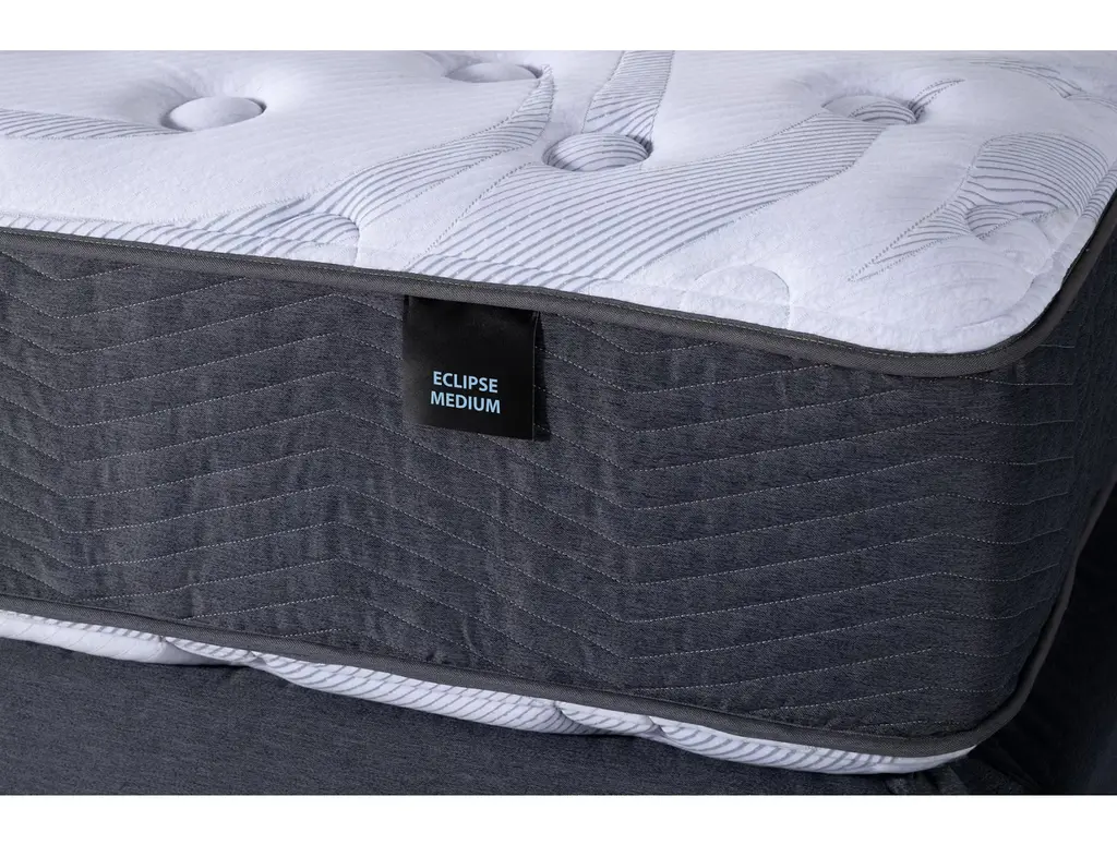 Jordan’s Mattress Factory® Eclipse Medium Double Sided mattress has a lot to offer. An inviting comfy knit cover, edge to edge individually wrapped coils for dependable support, and a neutral medium feel. Then there is the attractive everyday price! It can even be flipped due to its 2-sided construction.