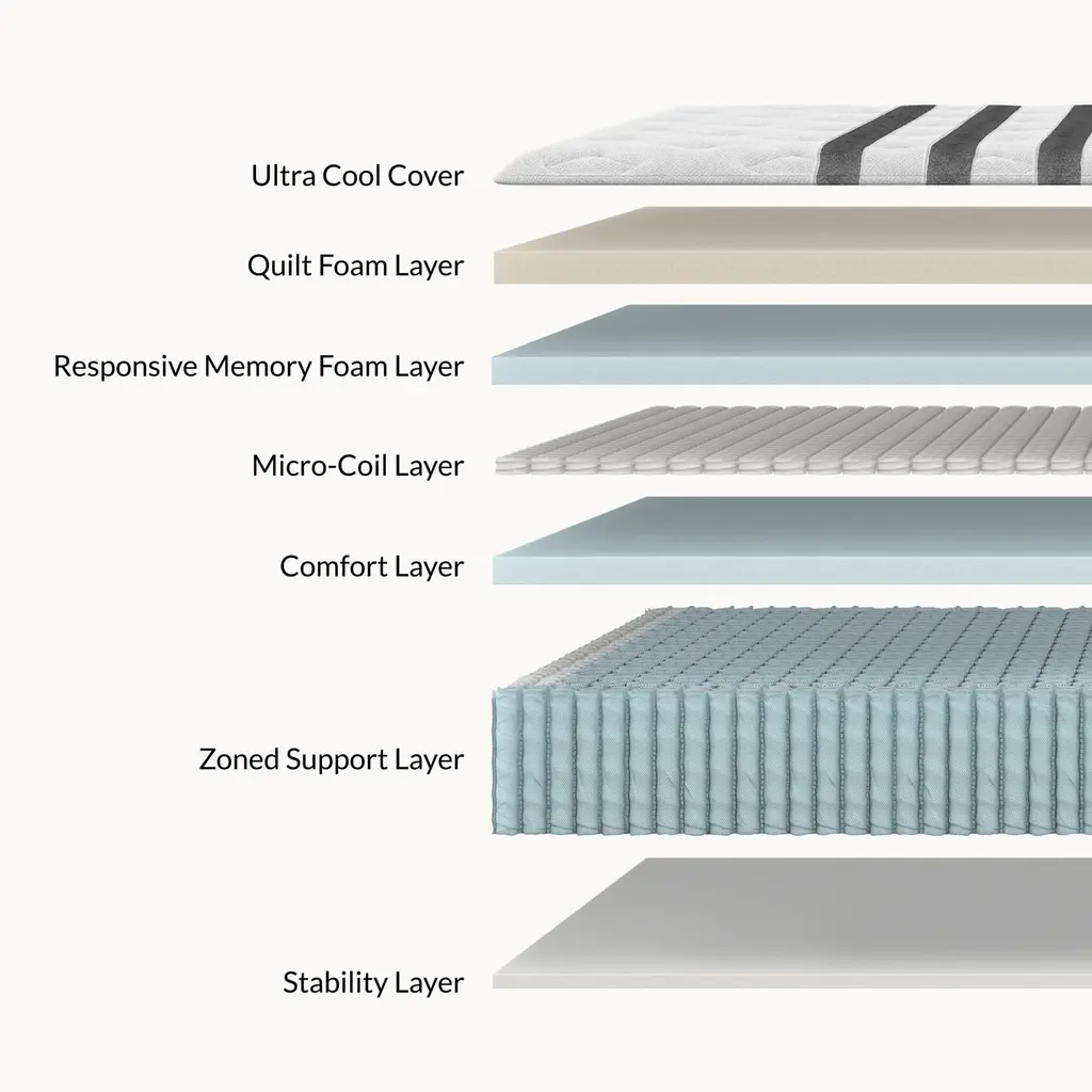 An award-winning hybrid that's sumptuously cushiony and supportive. Cooler sleep with an ultra-cool cover and gel-infused memory foam. Premium support and motion isolation with two layers of micro and zoned springs. Crafted with the high-quality materials Leesa is renowned for.
